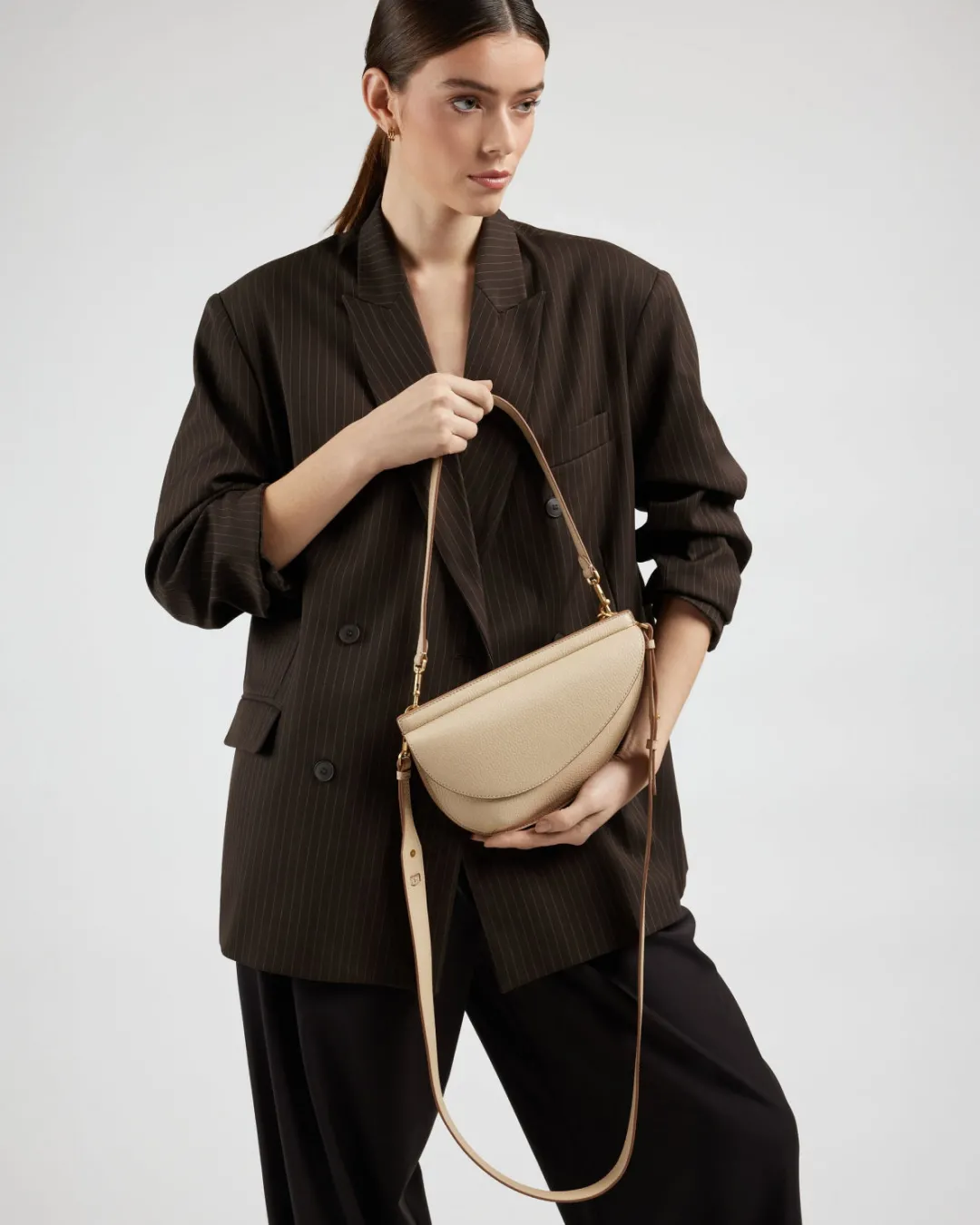 De JEANNY is een typische crossbody saddle bag. Deze heeft een kenmerkende gebogen vorm die doet denken aan de ronding van een paardenzadel. De bovenkant is afgerond met aan de onderkant een breder en platter profiel. Groot genoeg om al je belangrijke eigendommen in te bewaren.