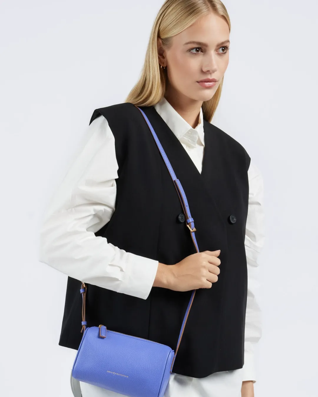 De JODIE heeft een ronde, ovale achtige vorm bevestigd aan een elegante leren crossbody band. Uniek in de SMAAK collectie is de bevestiging van de gespjes aan de band waarmee je de lengte aan beide kanten kunt verstellen. Dit geeft een speels effect aan het bescheiden ontwerp van de tas. De tas is gemaakt van zacht en soepel rundleer.