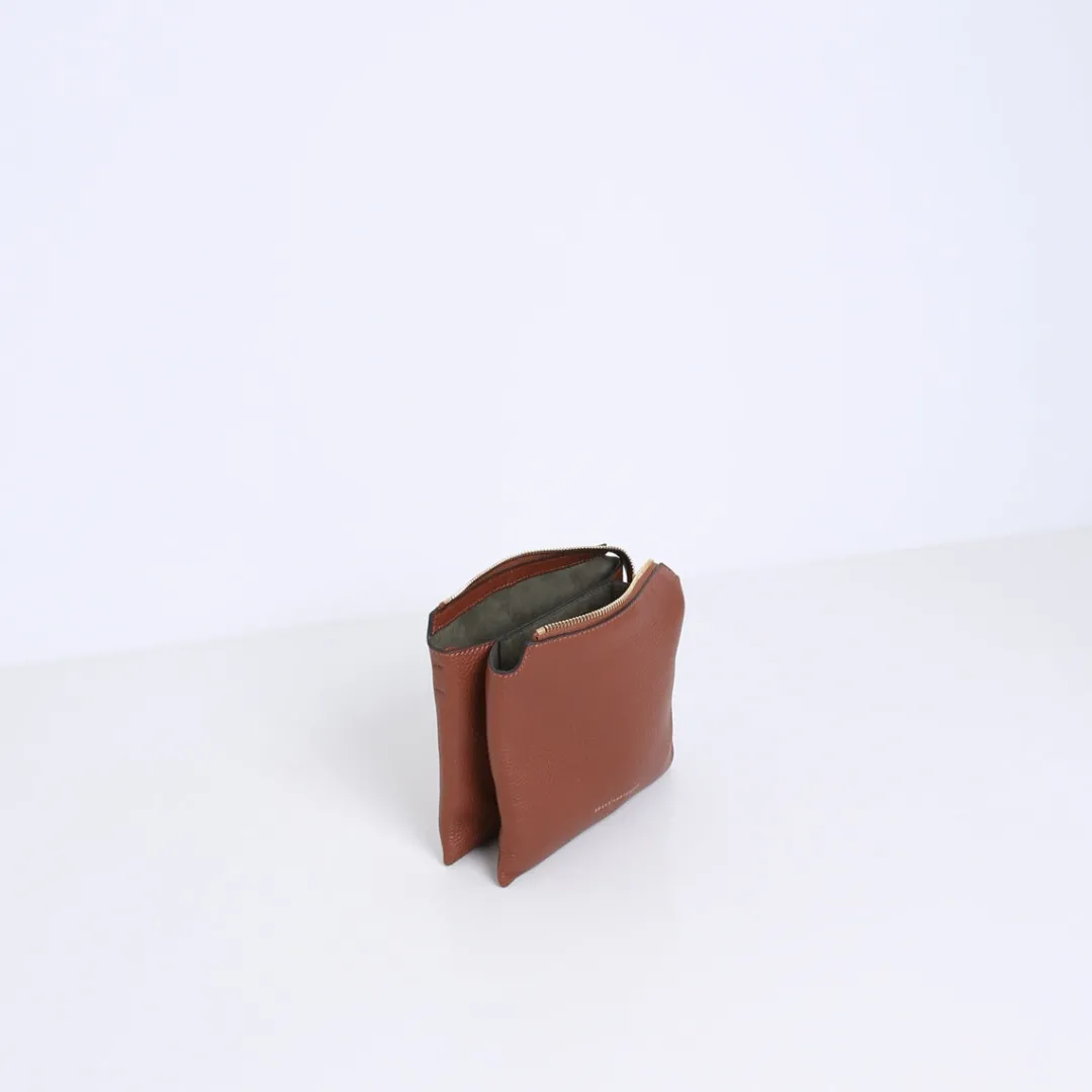 De tas is gemaakt van zacht soepel rundleer en is gevoerd met suedine (viscose) materiaal. Het hengsel is vast bevestigd aan de tas en verstelbaar in lengte door middel van het gespje.