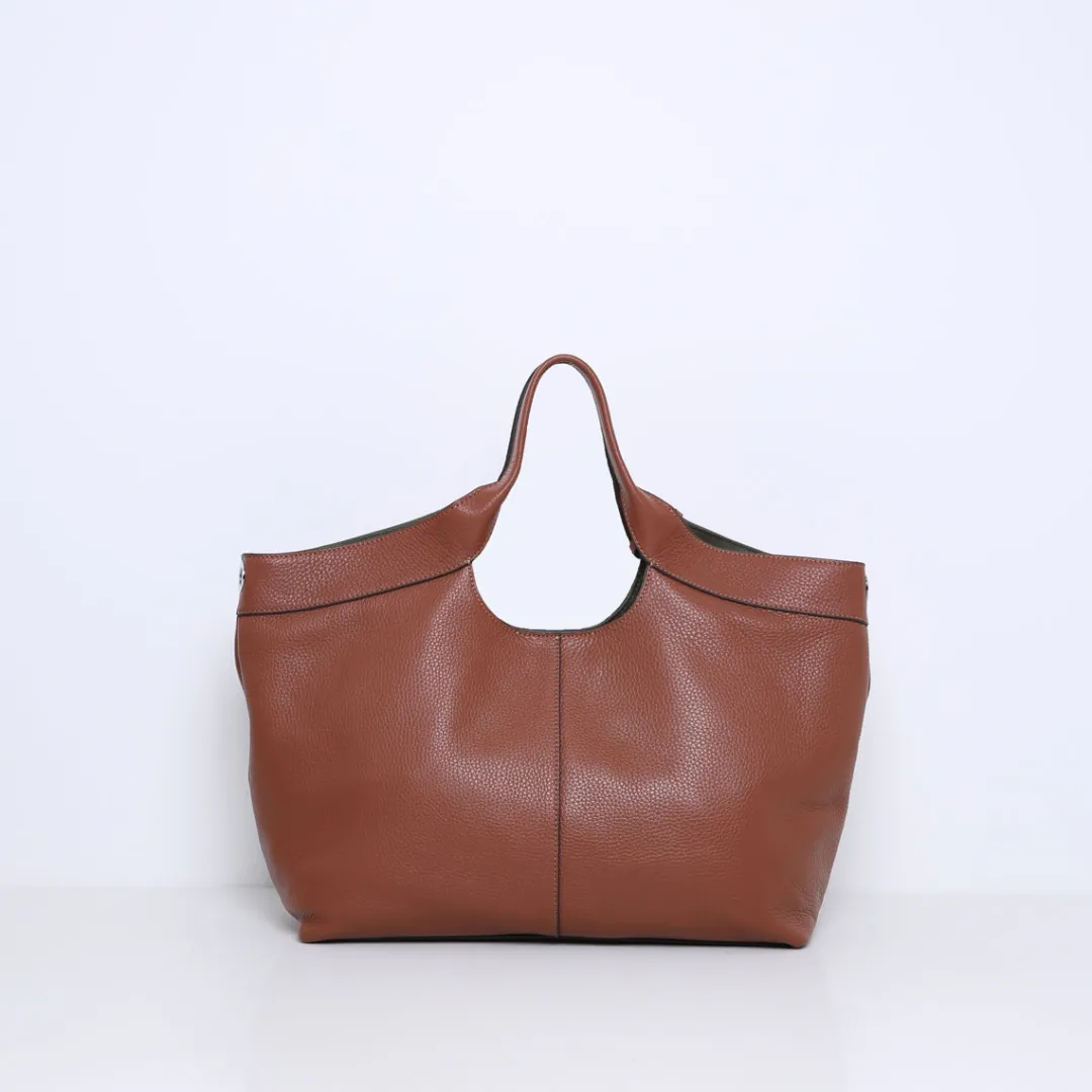 De GRETE is een shopper met een open ontwerp en een magneetsluiting in het midden voor eenvoudige toegang. Het royale formaat past zich aan de inhoud van de tas aan, waardoor hij zowel praktisch als stijlvol is. Aan de zijkanten vind je ronde hardware waaraan het hengsel is bevestigd. Het handvat is prachtig rond en vormt een geïntegreerd onderdeel van het design van de tas, wat zorgt voor een elegante en samenhangende uitstraling.