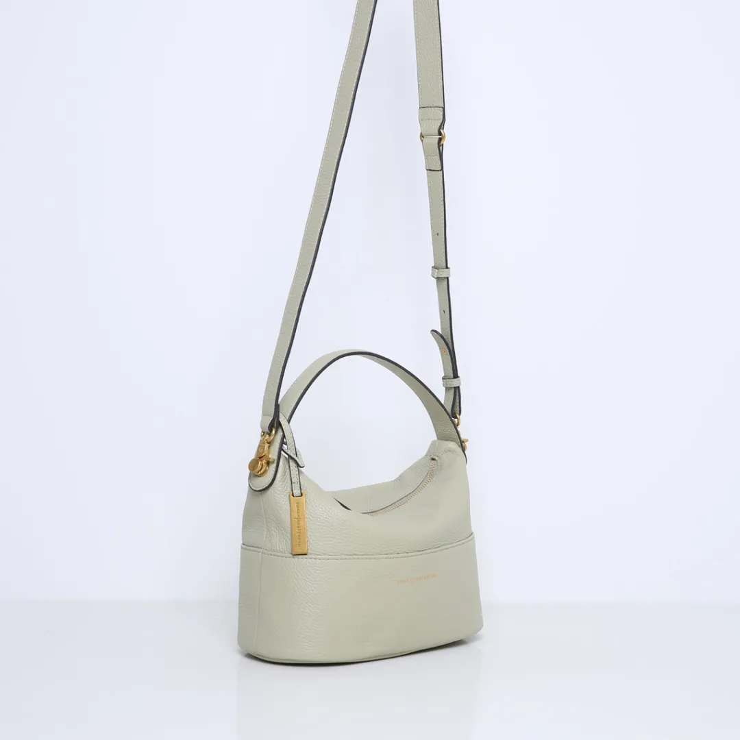De KIM crossbody tas is sportief en elegant tegelijkertijd. Door het korte handvat en afneembaar lange leren hengsel heeft het model een speels effect geschikt voor iedere gelegenheid. De KIM kan als schoudertas of als crossbody tas gedragen worden.