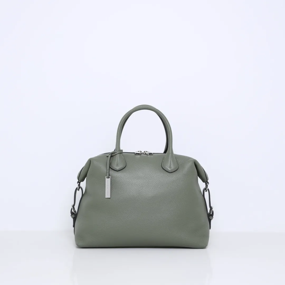 De tas is gemaakt van zacht en soepel rundleer. Beschikt over meerdere binnenvakjes en is gevoerd met suedine (viscose) materiaal. Met de afneembare, verstelbare leren schouderband kun je deze handtas ook als crossbody tas dragen.
