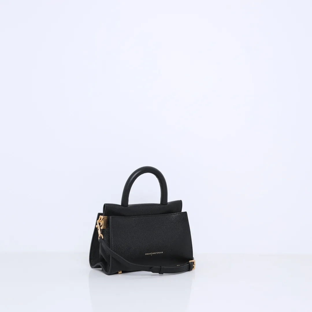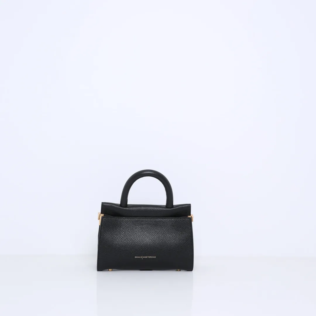 De opbergvakken bestaan uit twee compartimenten gescheiden door in het midden een enkelvoudig dik handvat. De compartimenten zijn gesloten met magneetsluiting. Beschikt over een extra open vak aan de binnenkant. De STEVIE staat mooi op zichzelf en heeft nopjes aan de onderkant.