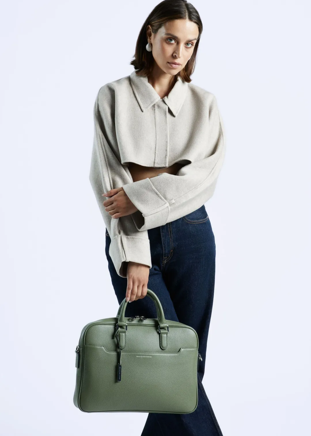 De tas biedt voldoende ruimte om laptops tot maximaal 15 Inch veilig op te bergen samen met extra vakken en compartimenten voor het organiseren van documenten, notitieboekjes, pennen en andere accessoires. De tas is gemaakt van zacht en soepel rundleer. Beschikt over meerdere binnenvakjes en is gevoerd met suedine (viscose) materiaal. Met de afneembare, verstelbare schouderband kun je deze handtas ook als crossbody tas dragen.