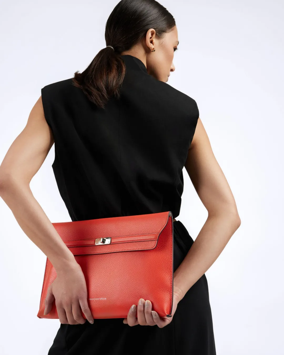 De COLE is een leren unisex envelopvormige pouch. Deze accessoire heeft een minimalistische uitstraling, terwijl deze toch functioneel is voor het dragen van essentiële spullen. De pouch heeft geen schouderriem en is bedoeld om in de hand of onder de arm te dragen. Deze kan gemakkelijk worden vastgehouden of in een grotere tas worden geplaatst.