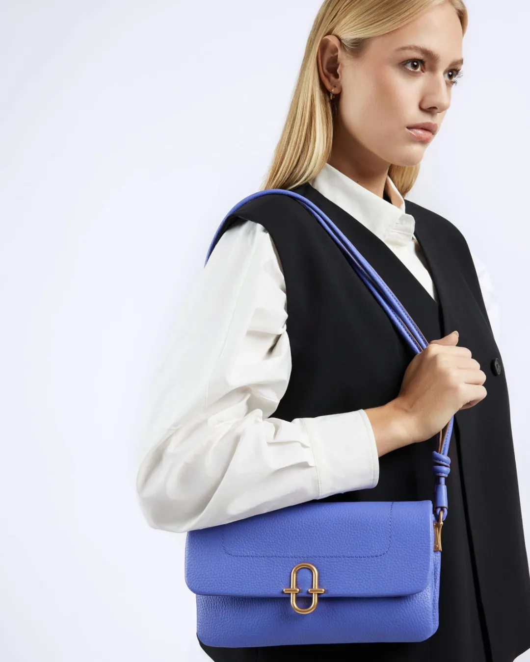 De BANGLE leren crossbody tas is een stijlvolle must-have item ontworpen voor iedere gelegenheid. De belangrijkste kenmerken aan de tas is de gesp aan de voorkant en het functionele design met meerdere opbergvakjes geïnspireerd op een accordeon. Deze bestaat uit drie compartimenten, een extra vakje met rits aan de binnenkant en is gevoerd met suedine (viscose) materiaal. De tas is gemaakt van zacht en soepel rundleer.