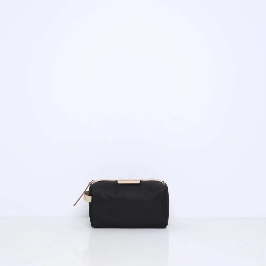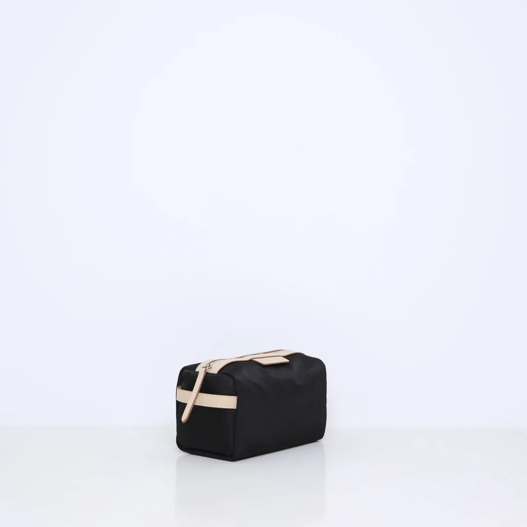 Ontdek onze veelzijdige nylon travel pouch, afgewerkt met luxe leerdetails. Deze stijlvolle pouch is perfect te gebruike…