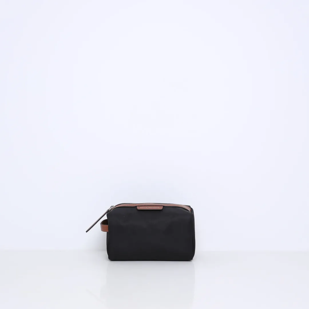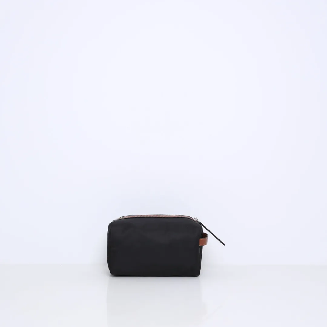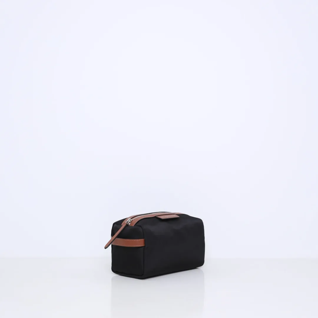Ontdek onze veelzijdige nylon travel pouch, afgewerkt met luxe leerdetails. Deze stijlvolle pouch is perfect te gebruike…