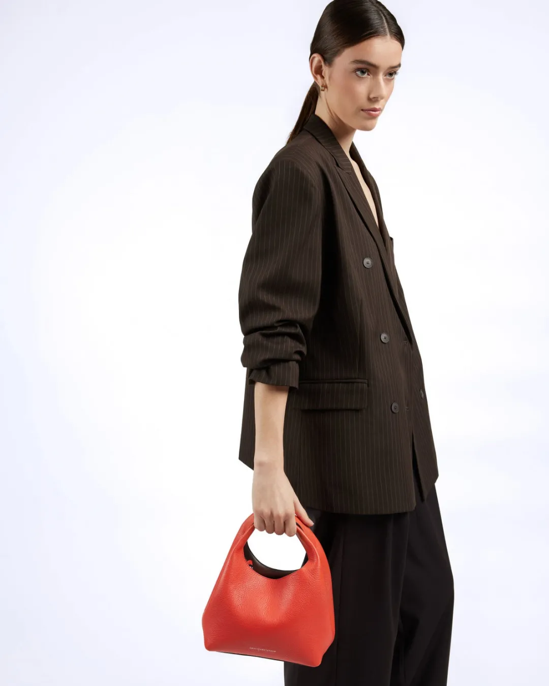De tas is gemaakt van zacht en soepel rundleer. Beschikt over een extra afneembare pouch van suedine afgewerkt met binnenvakjes. Met de afneembare, verstelbare leren schouderband kun je deze handtas ook als crossbody tas dragen.