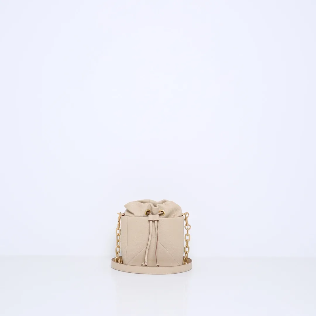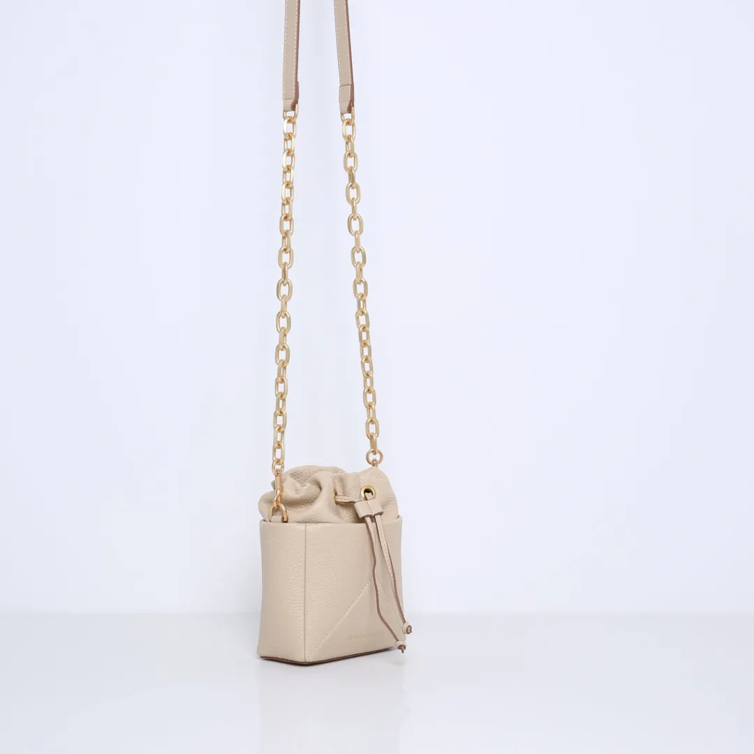 De GINA is een mini crossbody bucket bag. Het ontwerp lijkt op een kleine versie van een traditionele bucket bag. Hoewel dit een miniformaat betreft, biedt ze nog steeds voldoende ruimte om persoonlijke benodigdheden zoals een portemonnee, telefoon en sleutels in op te bergen.
