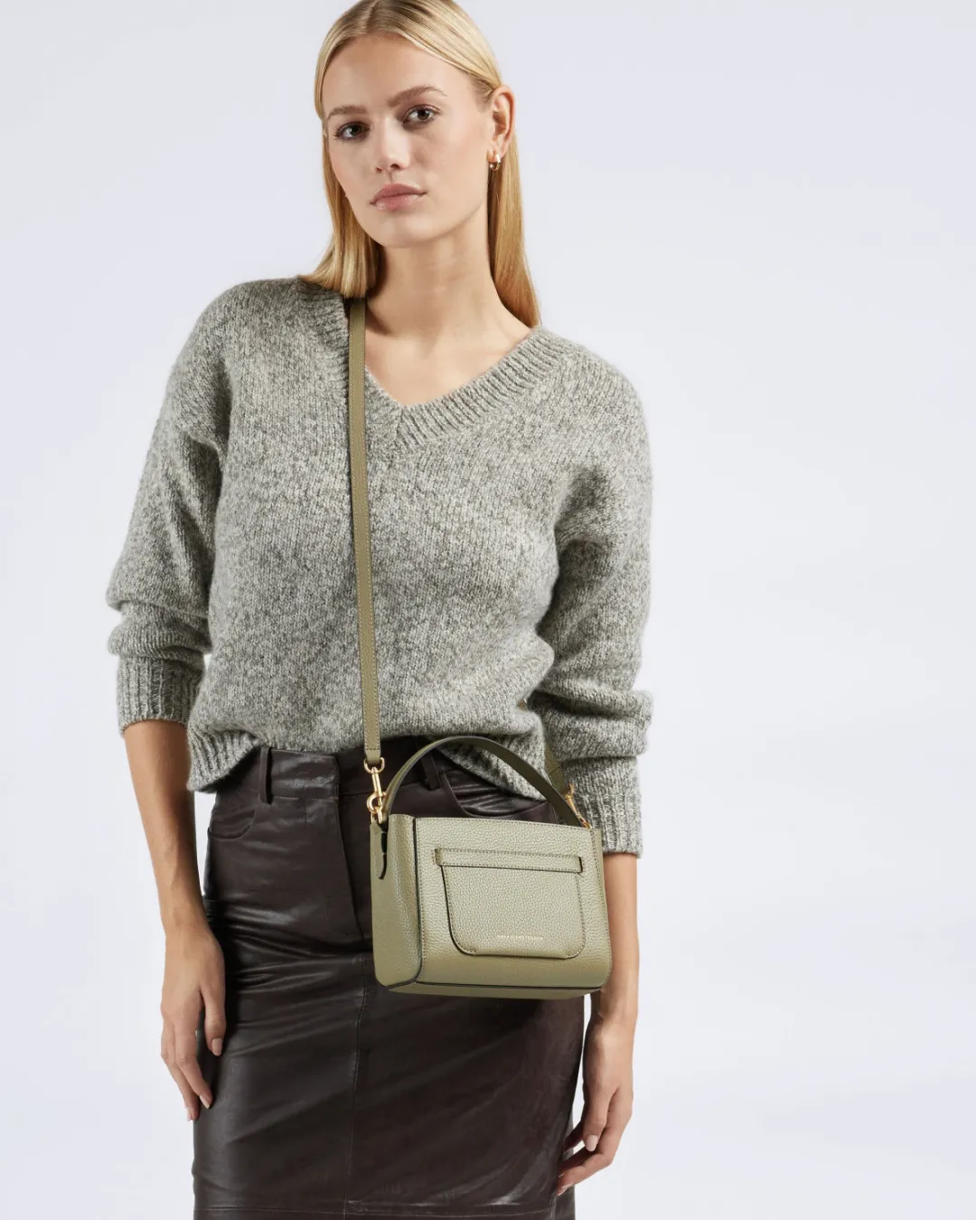 De RIVER leren handtas is een functionele accessoire dat elegantie en gevoel voor stijl uitstraalt. De minimalistische uitstraling van de tas is te danken aan het eenvoudige ontwerp met weinig hardware zichtbaar. Hierdoor krijg je een luxe en tijdloze look.