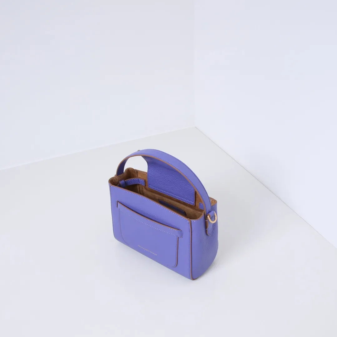 De RIVER kenmerkt zich aan het liggend rechthoekige ontwerp met aan de voorkant een extra open vak om vlakke objecten zoals pasjes in te kunnen bewaren. De tas is gemaakt van zacht soepel rundleer met een stevige afwerking en sluit zich aan de bovenkant door een flap met magneetsluiting. Beschikt over een extra binnenvak en is gevoerd met suedine (viscose) materiaal. Met de afneembare, verstelbare schouderband kun je deze handtas ook als crossbody tas dragen.