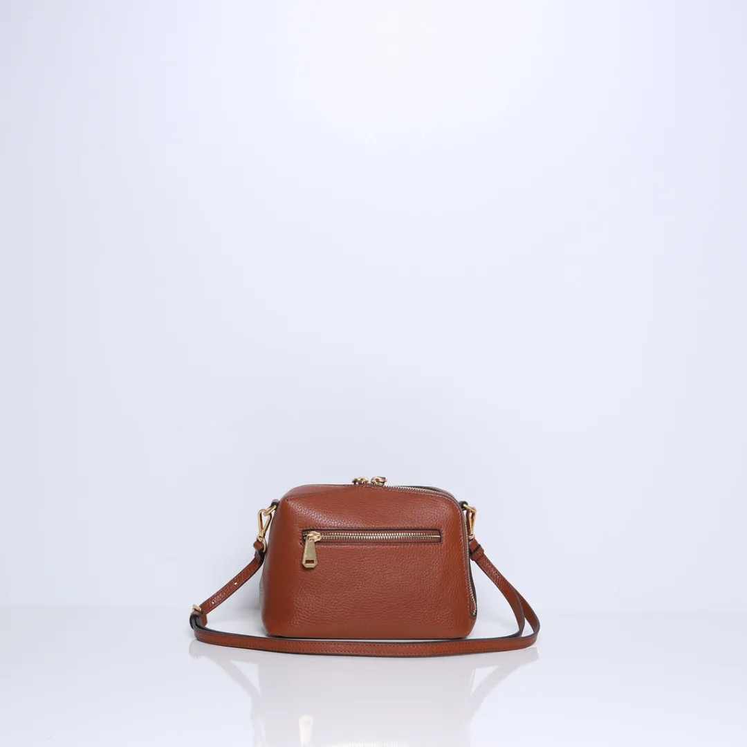 De tas heeft een korte stoffen schouderband met een lengte van 65 cm en een lange leren crossbody band verstelbaar tot 120 cm.