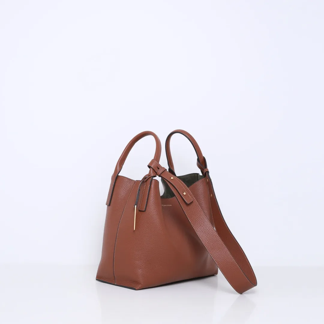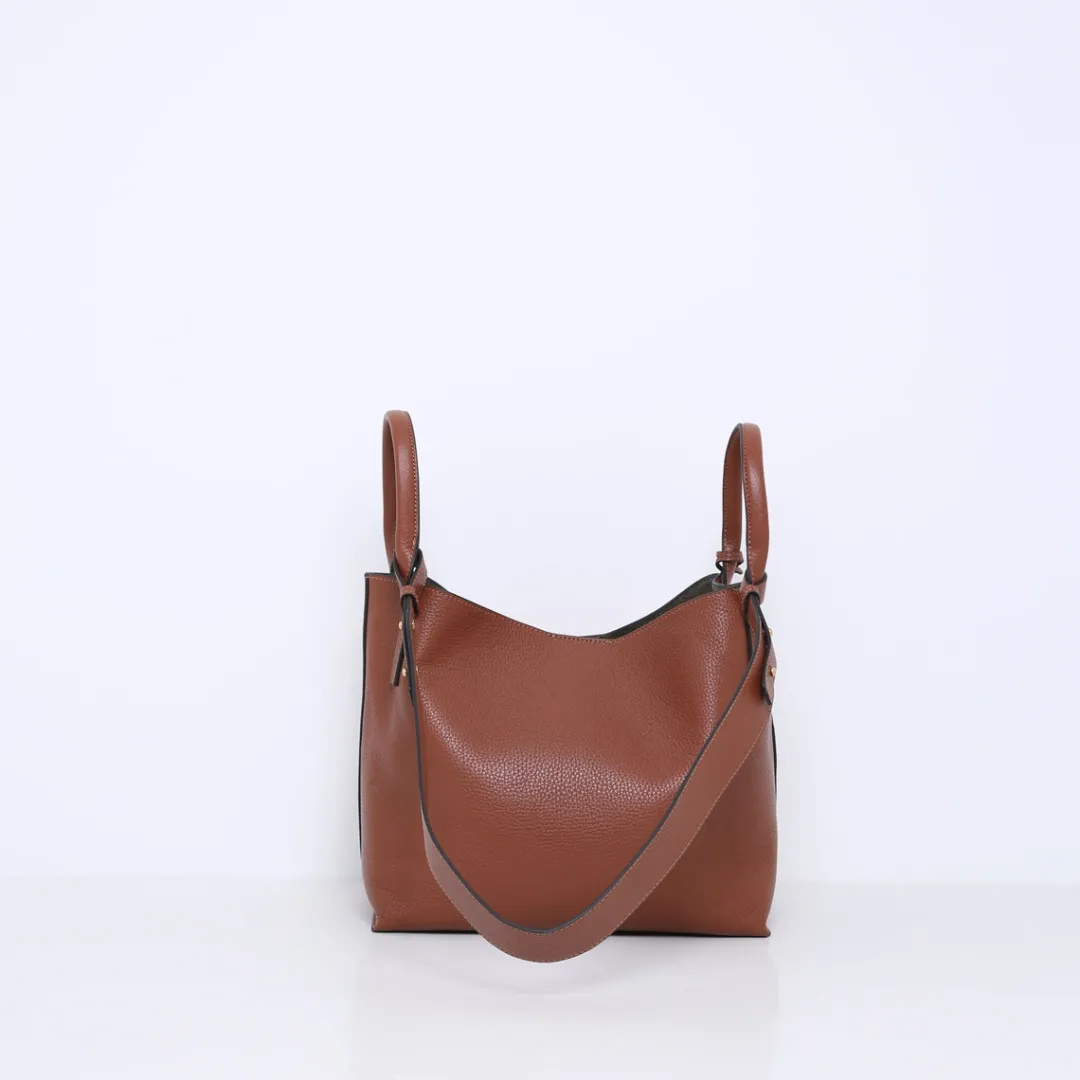 De SCOTT is een middelgrote rechthoekige tas, ontworpen voor stijl en functionaliteit. Deze tas heeft stevige, ronde dikke hengsels aan de linker- en rechterzijde, die hoog oplopen voor een comfortabele grip. Aan de hengsels is een breed leren schouderband bevestigd, die je iets kunt aanpassen in lengte voor een perfecte pasvorm.