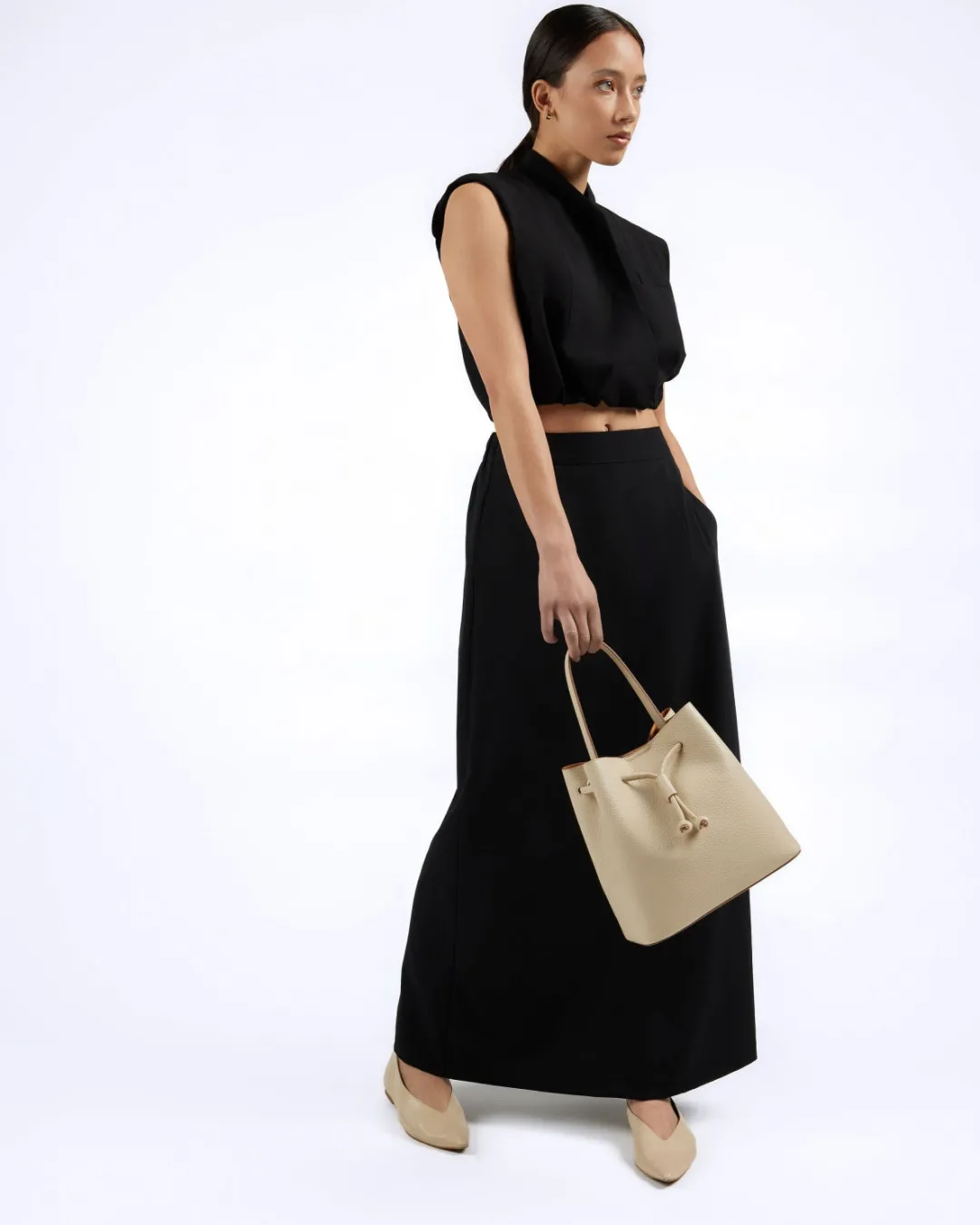 De brede, ronde bovenkant geeft gemakkelijk toegang tot je spullen. Het zorgt voor aanzienlijk meer opslagruimte dan je typische mini-schoudertas. De VIGO kun je het hele jaar door dragen vanwege de tijdloze vorm en het opvallend silhouet.
