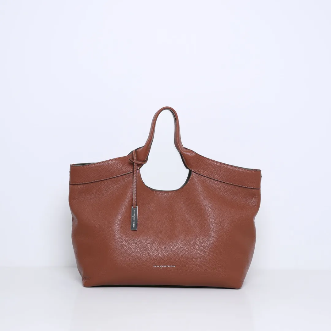 De GRETE is een shopper met een open ontwerp en een magneetsluiting in het midden voor eenvoudige toegang. Het royale formaat past zich aan de inhoud van de tas aan, waardoor hij zowel praktisch als stijlvol is. Aan de zijkanten vind je ronde hardware waaraan het hengsel is bevestigd. Het handvat is prachtig rond en vormt een geïntegreerd onderdeel van het design van de tas, wat zorgt voor een elegante en samenhangende uitstraling.