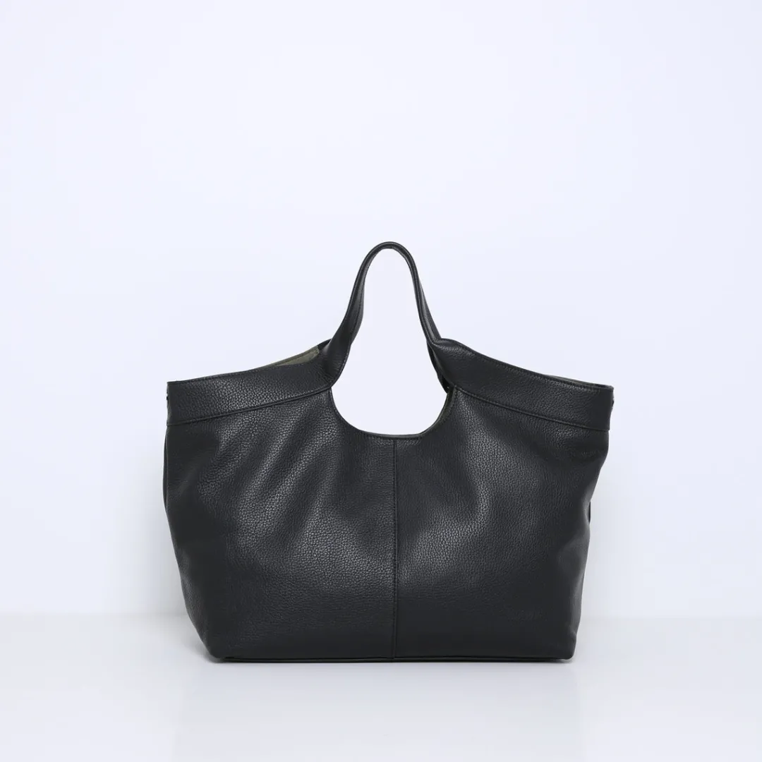 De GRETE is een shopper met een open ontwerp en een magneetsluiting in het midden voor eenvoudige toegang. Het royale formaat past zich aan de inhoud van de tas aan, waardoor hij zowel praktisch als stijlvol is. Aan de zijkanten vind je ronde hardware waaraan het hengsel is bevestigd. Het handvat is prachtig rond en vormt een geïntegreerd onderdeel van het design van de tas, wat zorgt voor een elegante en samenhangende uitstraling.