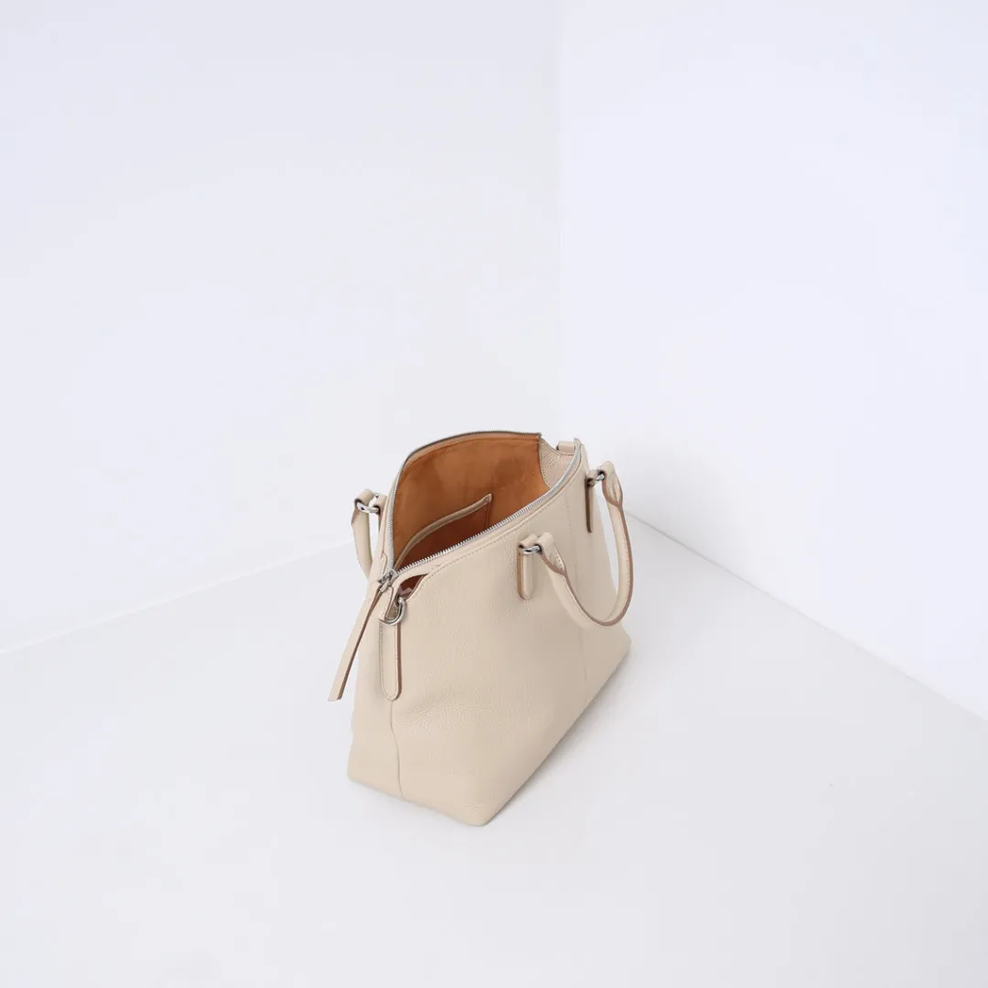 De tas is gemaakt van zacht en soepel rundleer. Beschikt over meerdere binnenvakjes en is gevoerd met suedine (viscose) materiaal. Met de afneembare, verstelbare schouderband kun je deze handtas ook als crossbody tas dragen; erg comfortabel tijdens informele uitjes of dagelijkse activiteiten.