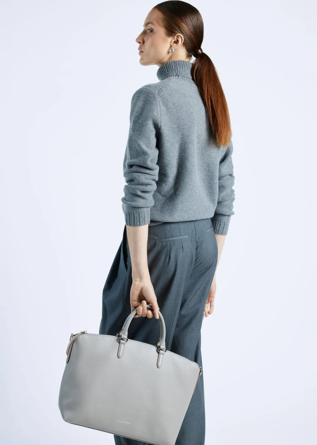 De rechthoekige basis biedt voldoende ruimte voor al je essentiële spullen zoals een laptop, documenten en persoonlijke items, terwijl de afgeronde hoeken een subtiele vrouwelijke touch toevoegen. De handtas is voorzien van stevige handvatten, perfect voor een professionele uitstraling wanneer je onderweg bent naar kantoor of een zakelijke bijeenkomst.