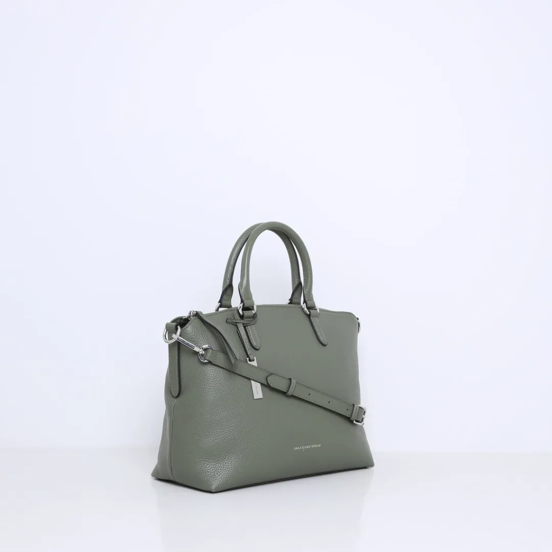 De tas is gemaakt van zacht en soepel rundleer. Beschikt over meerdere binnenvakjes en is gevoerd met suedine (viscose) materiaal. Met de afneembare, verstelbare schouderband kun je deze handtas ook als crossbody tas dragen; erg comfortabel tijdens informele uitjes of dagelijkse activiteiten.
