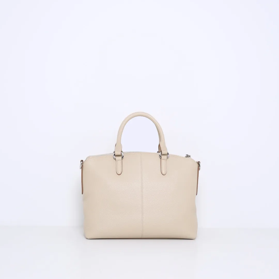 De tas is gemaakt van zacht en soepel rundleer. Beschikt over meerdere binnenvakjes en is gevoerd met suedine (viscose) materiaal. Met de afneembare, verstelbare schouderband kun je deze handtas ook als crossbody tas dragen; erg comfortabel tijdens informele uitjes of dagelijkse activiteiten.