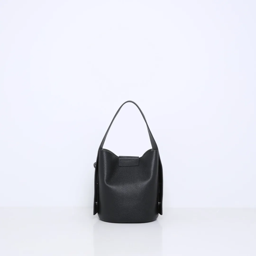 De NATHAN leren bucket handtas is de perfecte combinatie van stijl en functionaliteit. Het unieke design wordt geaccentueerd door het handhengsel dat doorloopt aan de zijkanten van de tas en subtiel uitloopt voor een verfijnde afwerking. Deze elegante tas heeft een open bovenzijde die veilig afgesloten wordt met een magneetkliksluiting.