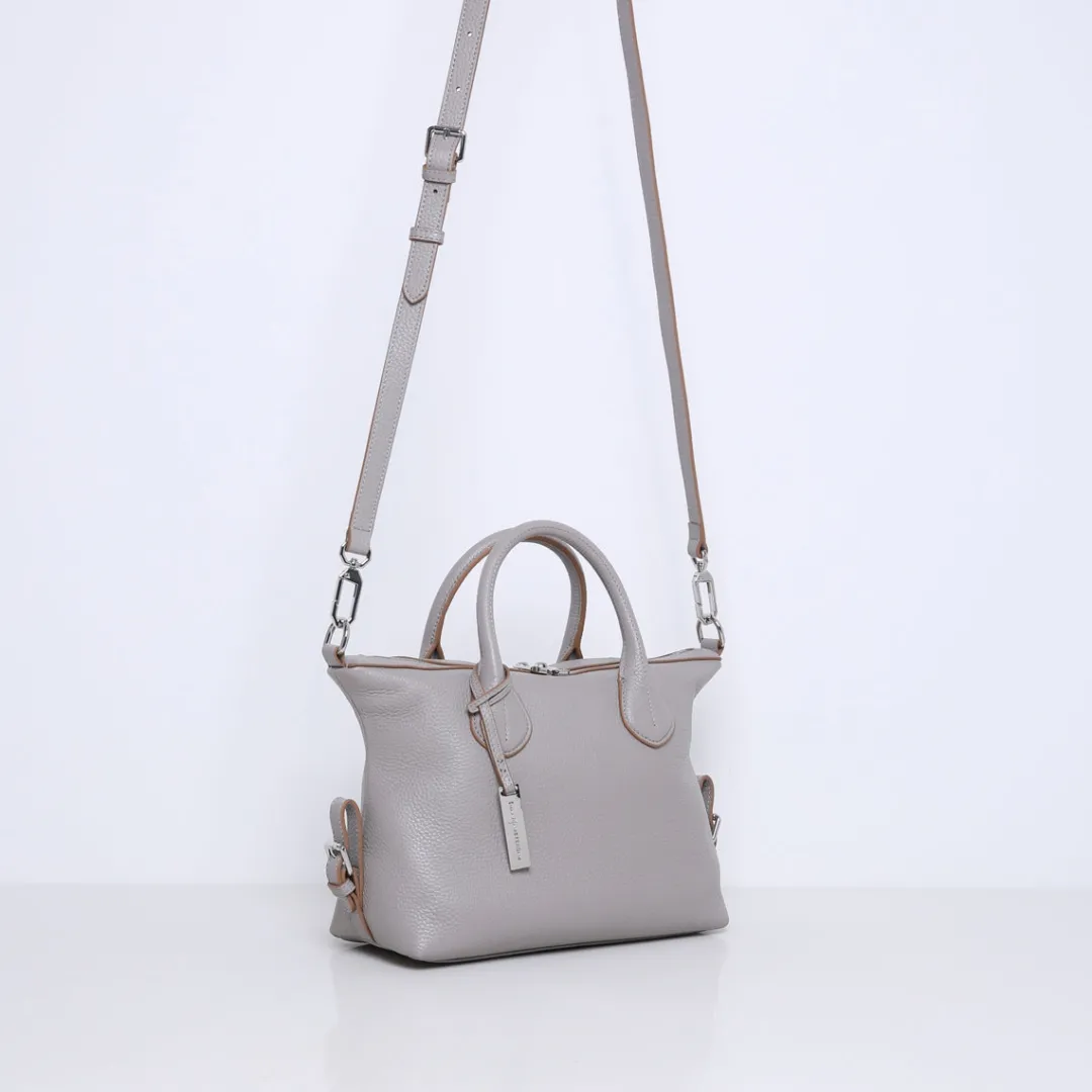 De tas is gemaakt van zacht en soepel rundleer. Beschikt over meerdere binnenvakjes en is gevoerd met suedine (viscose) materiaal. Met de afneembare, verstelbare leren schouderband kun je deze handtas ook als crossbody tas dragen.