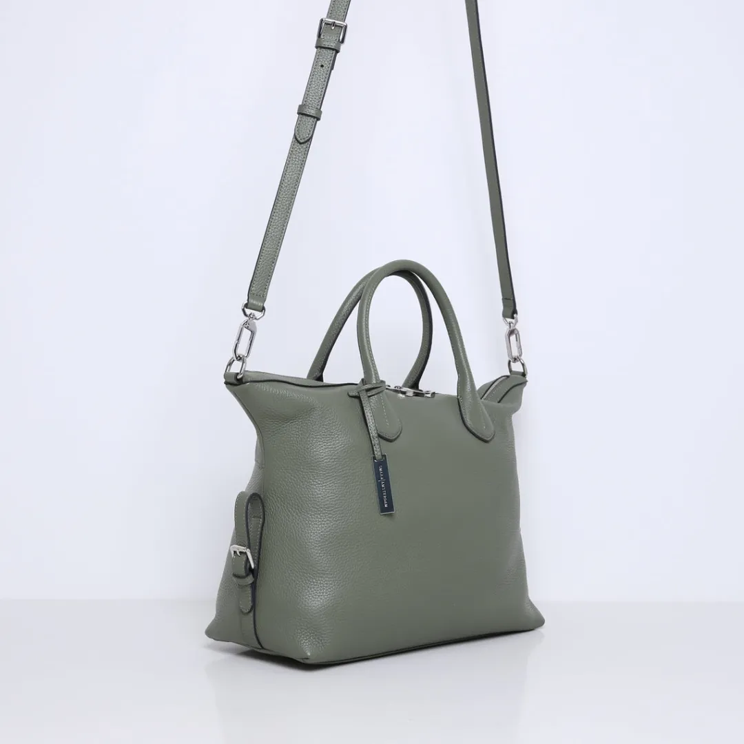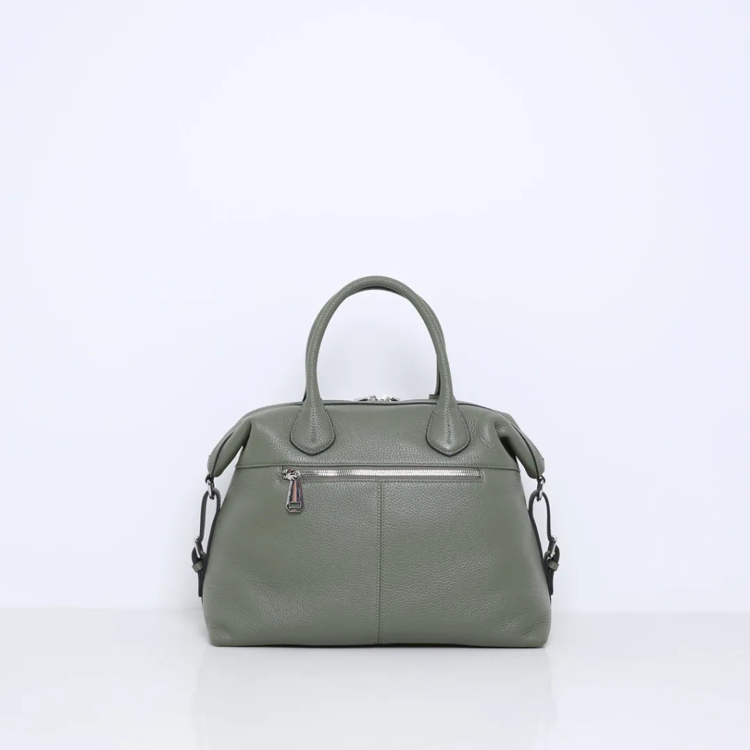 De tas is gemaakt van zacht en soepel rundleer. Beschikt over meerdere binnenvakjes en is gevoerd met suedine (viscose) materiaal. Met de afneembare, verstelbare leren schouderband kun je deze handtas ook als crossbody tas dragen.