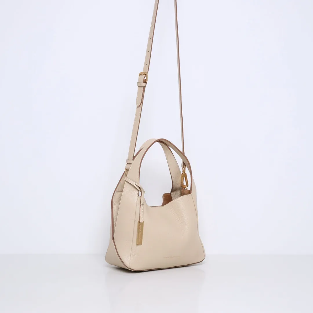De tas heeft een open bovenkant die wordt afgesloten met een discrete magneetsluiting, waardoor je snel en gemakkelijk toegang hebt tot je spullen terwijl ze toch veilig opgeborgen zijn. Dit middelgrote model is perfect voor dagelijks gebruik, met voldoende ruimte voor al je essentiële spullen zonder te groot of onhandig te zijn. De tas kan zowel in de hand als crossbody gedragen worden dankzij een afneembare en verstelbare schouderriem.