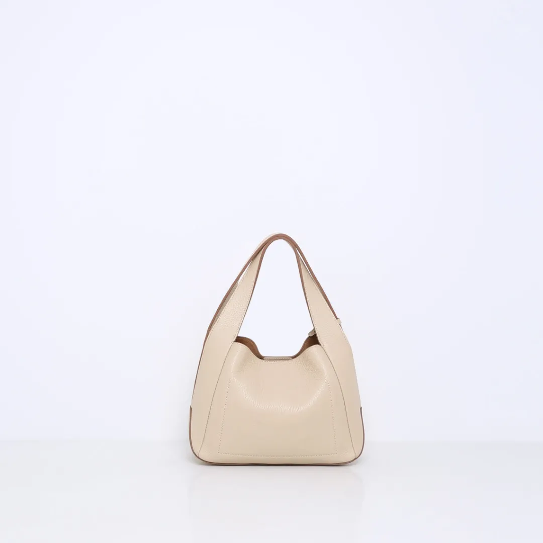De SOPHIE is een leren handtas wat elegantie combineert met praktische functionaliteit, ideaal voor dagelijks gebruik en veelzijdige styling. De handtas heeft twee stevige leren hengsels die naadloos overgaan aan de zijkanten van de tas en daar eindigen in een stijlvolle split. Deze splits voegen niet alleen een verfijnd detail toe, maar zorgen ook voor extra flexibiliteit en comfort bij het dragen.
