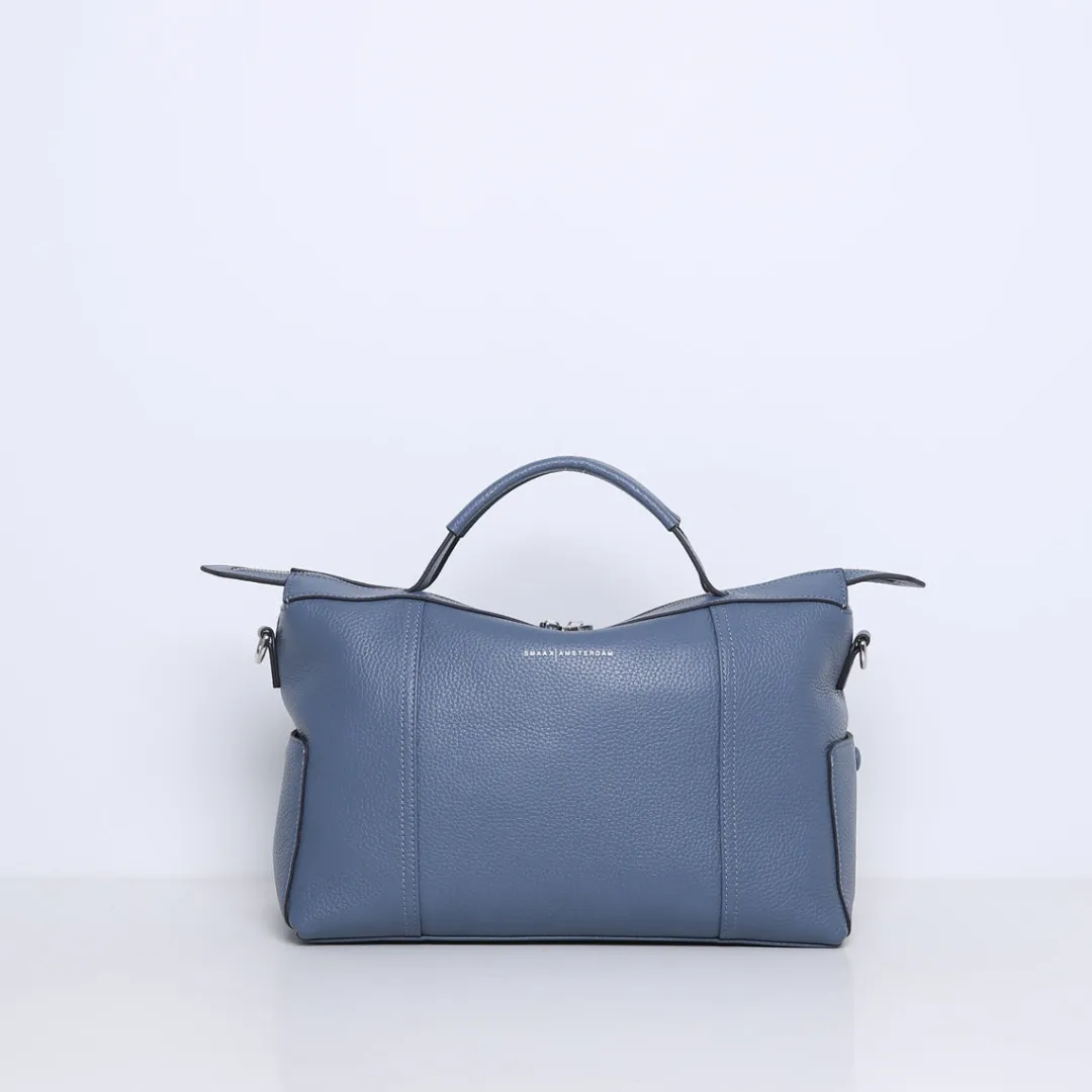 De tas is gemaakt van zacht soepel rundleer en is gesloten aan de bovenkant met rits.