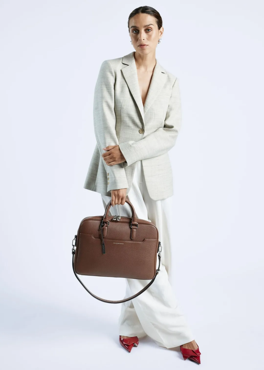 De tas biedt voldoende ruimte om laptops tot maximaal 15 Inch veilig op te bergen samen met extra vakken en compartimenten voor het organiseren van documenten, notitieboekjes, pennen en andere accessoires. De tas is gemaakt van zacht en soepel rundleer. Beschikt over meerdere binnenvakjes en is gevoerd met suedine (viscose) materiaal. Met de afneembare, verstelbare schouderband kun je deze handtas ook als crossbody tas dragen.