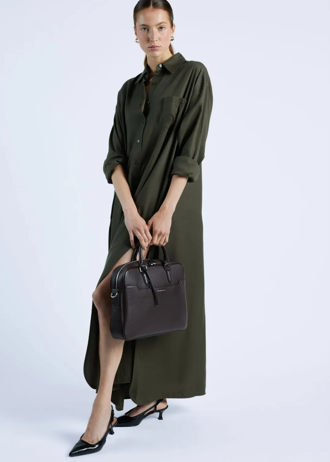 De tas biedt voldoende ruimte om laptops tot maximaal 15 Inch veilig op te bergen samen met extra vakken en compartimenten voor het organiseren van documenten, notitieboekjes, pennen en andere accessoires. De tas is gemaakt van zacht en soepel rundleer. Beschikt over meerdere binnenvakjes en is gevoerd met suedine (viscose) materiaal. Met de afneembare, verstelbare schouderband kun je deze handtas ook als crossbody tas dragen.