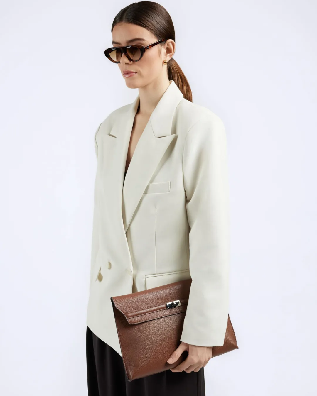 De COLE is een leren unisex envelopvormige pouch. Deze accessoire heeft een minimalistische uitstraling, terwijl deze toch functioneel is voor het dragen van essentiële spullen. De pouch heeft geen schouderriem en is bedoeld om in de hand of onder de arm te dragen. Deze kan gemakkelijk worden vastgehouden of in een grotere tas worden geplaatst.