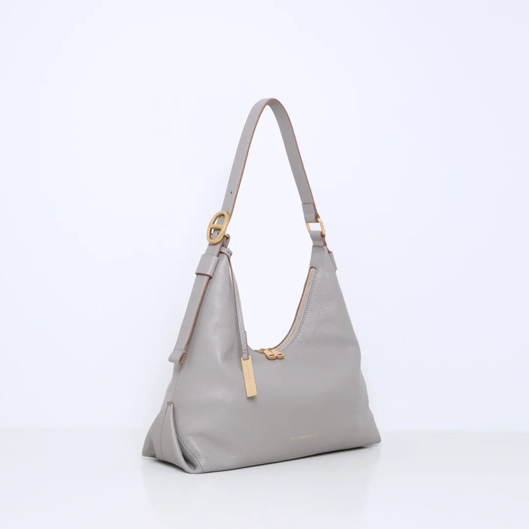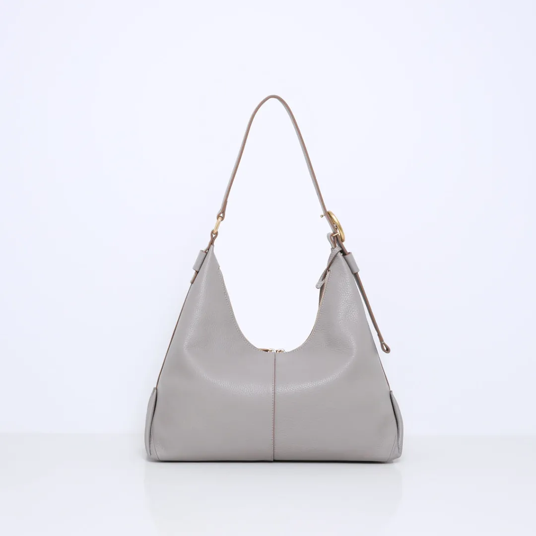 De ELKE hobo schoudertas combineert klassieke elegantie met moderne flair. De tas is ontworpen met een praktische ritssluiting die zorgt voor veiligheid en gemak. Uniek aan het ontwerp is de afwerking aan de zijkanten. Ze zijn zorgvuldig omgebogen en vast gestikt aan de zijkant wat een eigentijds en opvallend element toevoegt aan het design. De ELKE geeft een verfijnde en modieuze uitstraling.